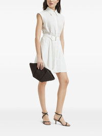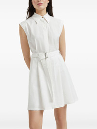 Techno cotton texture twill belted mini shirt dress with monili