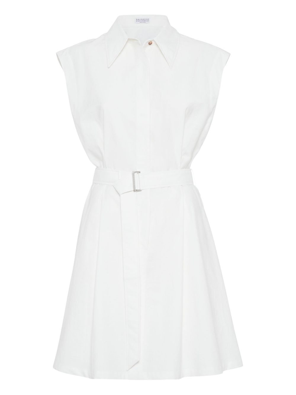 shirt dress Highlights - White - Concealed front fastening - Belted waist - Classic collar - Sleeveless Made in Italy Composition Cotton 87%, Nylon 13%