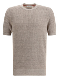 short-sleeve knitted T-shirt Highlights - Beige - Ribbed knit - Short sleeve - Crew neck Made in Italy Composition Linen/Flax 70%, Cotton 30% Washing instructions Read Manufacturer Guidelines