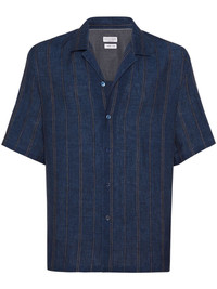 short-sleeve linen shirt Highlights - Navy blue - Linen/flax - Vertical stripe print - Cuban collar - Short sleeves - Front button fastening - Straight hem Made In Italy Composition Linen/Flax 100% Washing instructions Read Manufacturer Guidelines