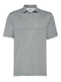 Silk and cotton lightweight jersey polo with shirt-style collar and faux-layering