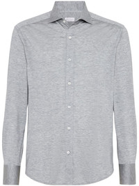 silk-cotton button-up shirt Highlights - Grey - Silk-cotton blend - Classic collar - Front button fastening - Long sleeves - Buttoned cuffs - Curved hem Made in Italy Composition Silk 62%, Cotton 38% Washing instructions Read Manufacturer Guidelines