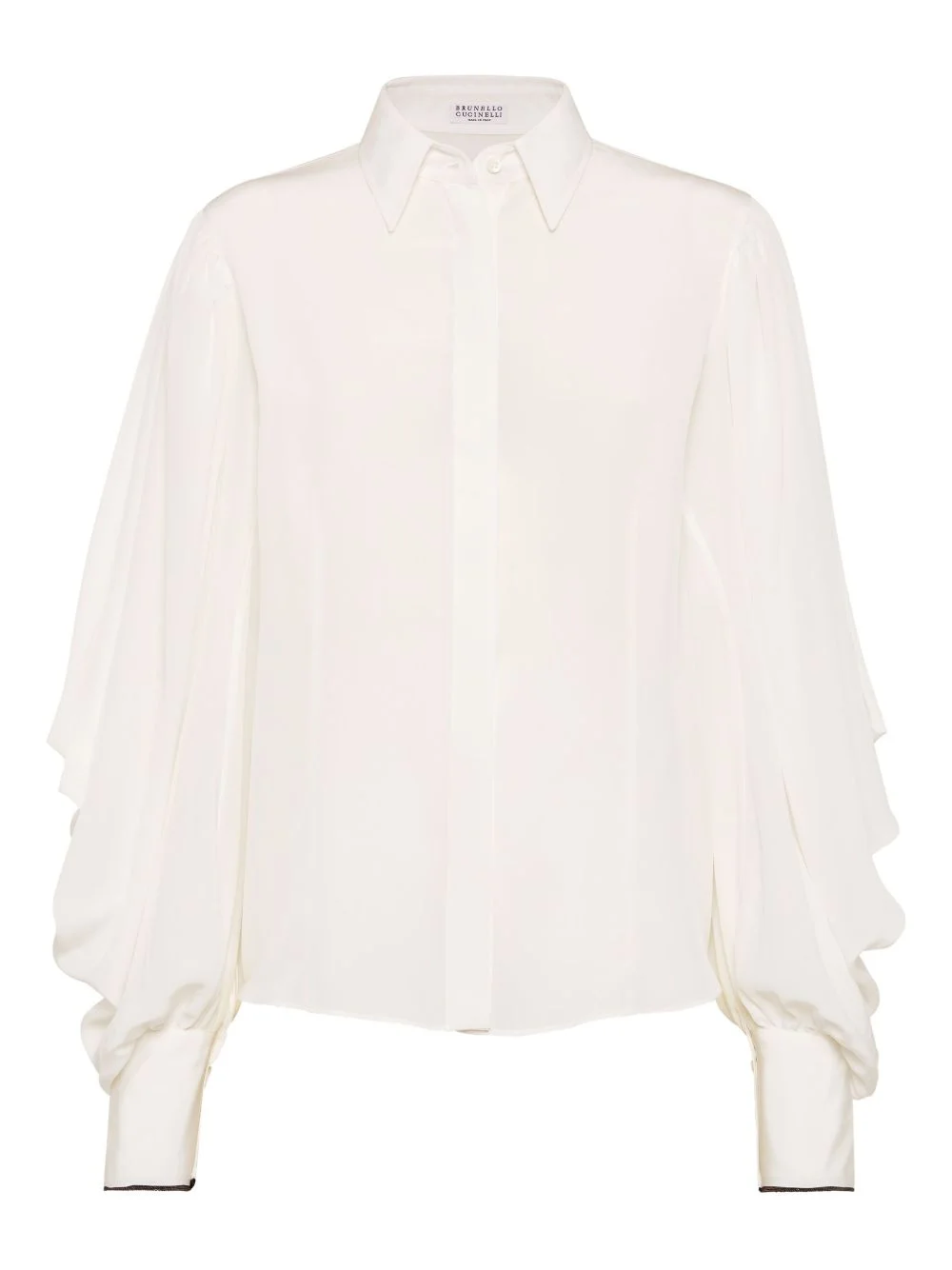 silk shirt Highlights - Ivory - Button fastening - Long sleeves Made in Italy Composition Silk 100% Washing instructions Specialist Cleaning