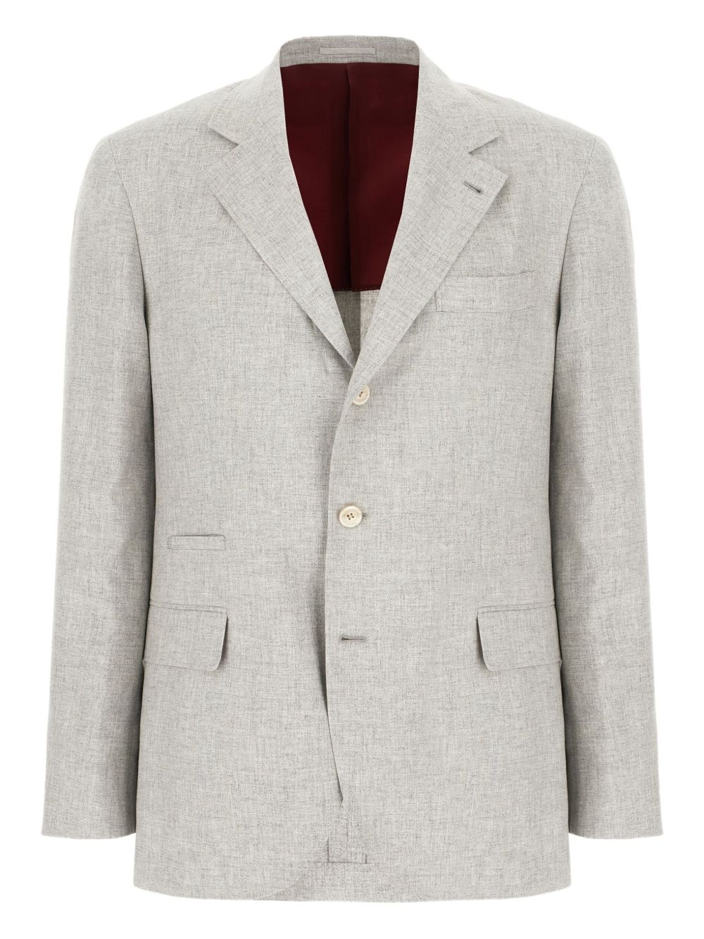 single-breasted blazer Highlights - Grey - Front button fastening - Two side flap pockets - Long sleeves - Buttoned cuffs Imported Composition Silk 52%, Cashmere 48%