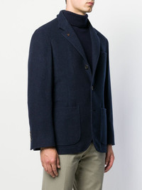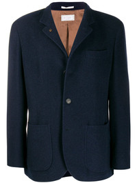 single breasted blazer Navy blue wool and cotton single breasted blazer from Brunello Cucinelli featuring notched lapels, a front button fastening, a chest pocket, long sleeves, button cuffs, front pockets and side slits. Made in Italy Composition Lining: Cupro 100%, Cotton 100% Outer: Cashmere 100% SIZE & FIT Model measurements Height 6 ft 2 in(1.89 m) Bust/Chest 36.22 in(92 cm) Hips 35.82 in(91 cm) Waist 28.74 in(73 cm) Washing instructions Dry Clean Only
