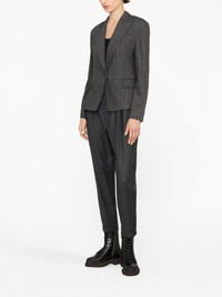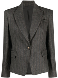 single-breasted blazer Brunello Cucinelli's Italian craftsmanship is demonstrated by their expertly created garments that showcase their rich heritage. Spun from a virgin-wool blend in a grey hue, this Brunello Cucinelli blazer boasts a single-breasted silhouette. Highlights - Battleship grey - Virgin wool blend - Peak lapels - Shoulder pads - Long sleeves - Front button fastening - Two side flap pockets - Straight hem Made in Italy Composition Outer: Eco Brass 100%, Wool 43%, Virgin Wool 42%, Polyamide 12%, Viscose 2%, Metallized Polyester 1% Lining: Cupro 100%, Acetate 74%, Silk 26% SIZE & FIT Model measurements Height 5 ft 10 in(1.78 m) Bust/Chest 30.7 in(78 cm) Hips 34.64 in(88 cm) Waist 23.22 in(59 cm) Measurement SLEEVE LENGTH 17.32 in(44 cm) LENGTH 23.62 in(60 cm) WAIST 33.07 in(84 cm) BUST 35.43 in(90 cm) FittingInformation Designed for a slim fit that sits just away from the body offering a close yet comfortable fit Made from a midweight non-stretch fabric This piece fits true to size – take your usual size