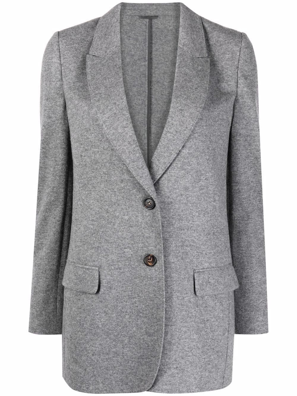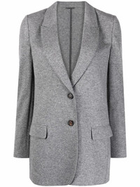 single-breasted cashmere jacket grey cashmere peak lapels long sleeves front button fastening two side flap pockets Made in Italy Composition Lining: Cupro 100%, Acetate 74%, Silk 26% Outer: Cashmere 100%, Eco Brass 100% SIZE & FIT Model measurements Height 5 ft 9 in(1.74 m) Bust/Chest 31.49 in(80 cm) Hips 37.4 in(95 cm) Waist 25.19 in(64 cm) FittingInformation This piece fits true to size. We recommend you get your regular size Cut for a loose fit Made with a mid-weight non-stretch fabric