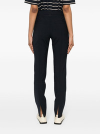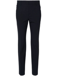 slim-cut cigarette trousers Highlights - Navy blue - Virgin wool blend - Belt loops - Pressed crease - Two diagonal pockets to the sides - Two rear welt pockets - Slim cut - Concealed front button, hook and zip fastening Made in Italy Composition Outer: Virgin Wool 75%, Polyamide 23%, Elastane 2% Lining: Polyester 36%, Acetate 32%, Cupro 32% SIZE & FIT Model measurements Height 5 ft 10 in(1.78 m) Bust/Chest 32.67 in(83 cm) Hips 35.43 in(90 cm) Waist 23.22 in(59 cm) FittingInformation Designed for a slim fit, these trousers offer a close fit at the waist, allowing a comfortable close fit and some movement over the leg Made from a midweight stretch fabric, this piece offers elasticity and flexibility when worn This piece fits true to size – take your usual size