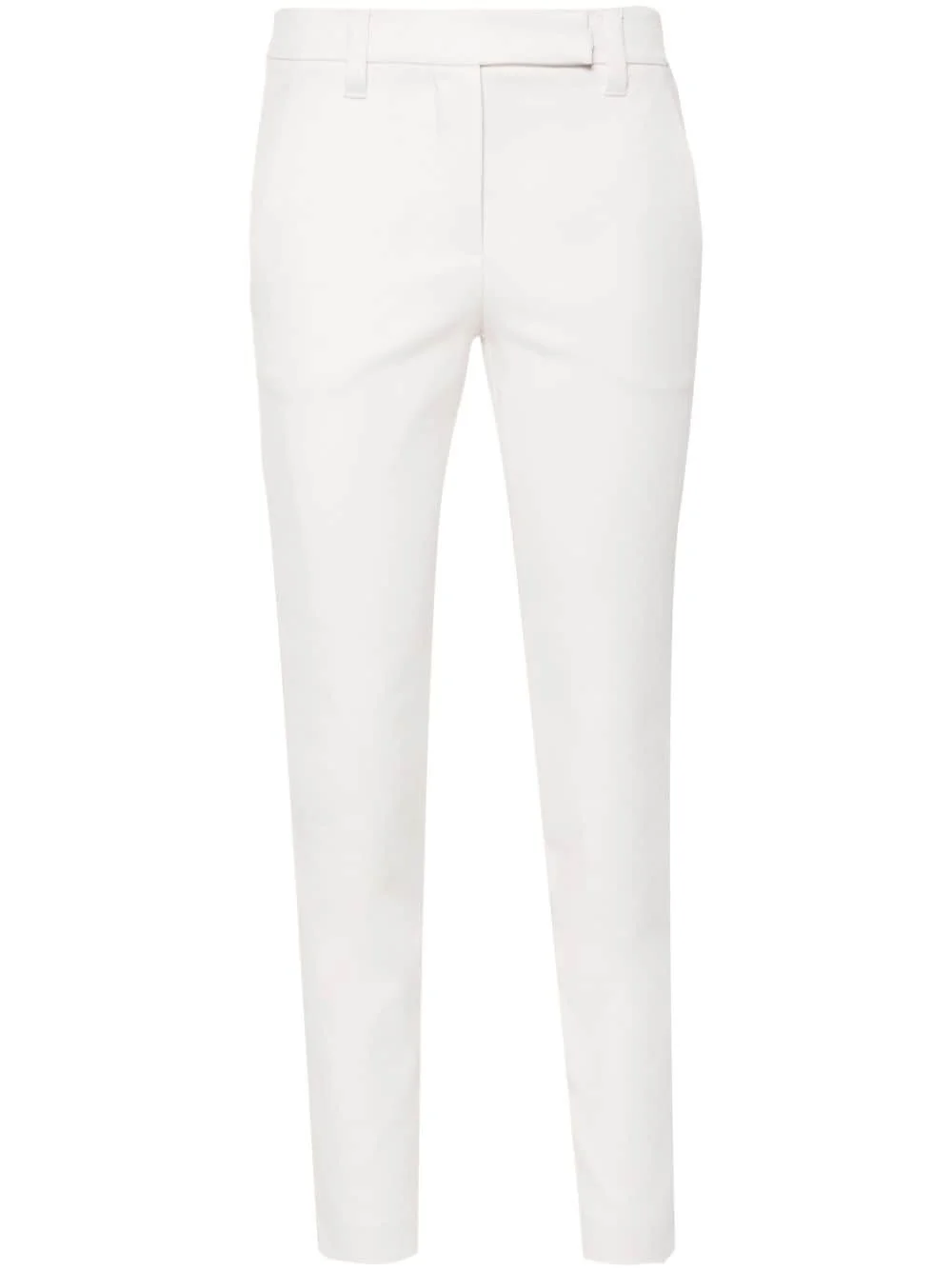 slim-fit cropped cotton trousers Highlights - Beige - Stretch-cotton - Twill weave - Slim cut - Cropped leg - Belt loops - Two diagonal pockets to the sides - Two rear welt pockets - Concealed front button, hook and zip fastening Made in Italy Composition Outer: Cotton 97%, Elastane 3% Lining: Acetate 65%, Polyester 35% SIZE & FIT Model measurements Height 5 ft 11 in(1.8 m) Bust/Chest 30.7 in(78 cm) Hips 35.03 in(89 cm) Waist 24.4 in(62 cm) FittingInformation Designed for a slim fit, these trousers offer a close fit at the waist, allowing a comfortable close fit and some movement over the leg Cropped in length Made from a midweight stretch fabric, this piece offers elasticity and flexibility when worn This piece fits true to size – take your usual size Washing instructions Dry Clean Only