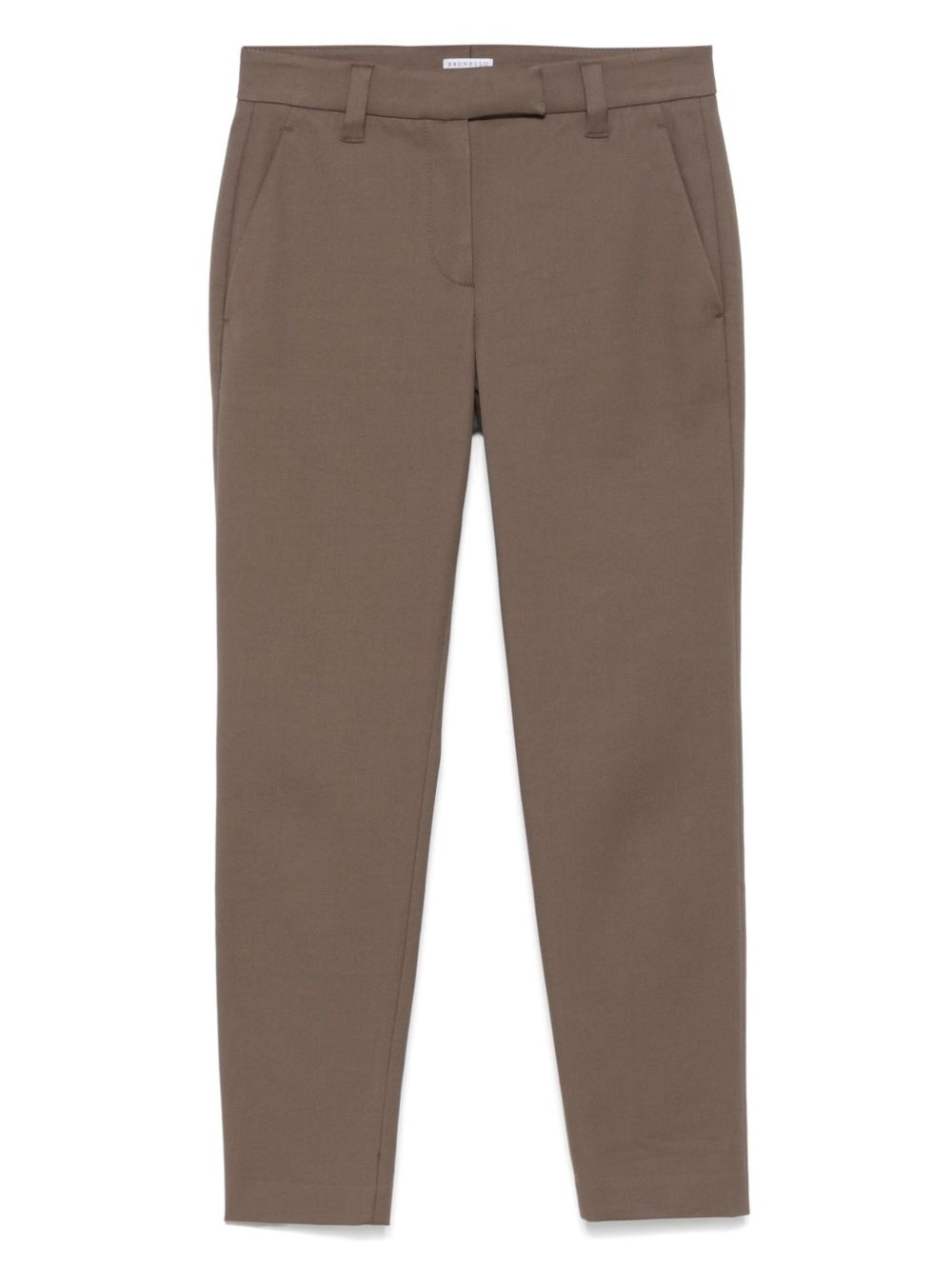 slim-fit trousers Highlights - Olive green - Concealed front fastening - Belt loops - Two side slash pockets - Two rear jetted pockets Made in Italy Composition Outer: Cotton 97%, Elastane 3% Lining: Polyester 36%, Acetate 32%, Cupro 32% SIZE & FIT Model measurements Height 5 ft 10 in(1.78 m) Bust/Chest 33.85 in(86 cm) Hips 36.61 in(93 cm) Waist 26.77 in(68 cm) FittingInformation Designed for a slim fit, these trousers offer a close fit at the waist, allowing a comfortable close fit and some movement over the leg Made from a midweight stretch fabric, this piece offers elasticity and flexibility when worn