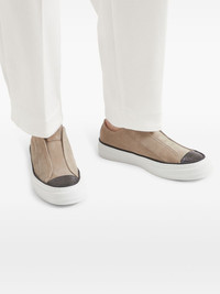Suede slip-on sneakers with precious toe