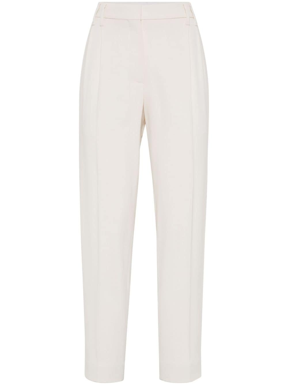 Slouchy trousers Highlights - White - Cotton-virgin wool blend - Concealed front button, hook and zip fastening - Lightweight construction - Pressed crease - Belt loops - Two side inset pockets - Two rear welt pockets - Signature monili chain detail - Straight leg Made in Italy Composition Viscose 98%, Elastane 2% Washing instructions Dry Clean Only