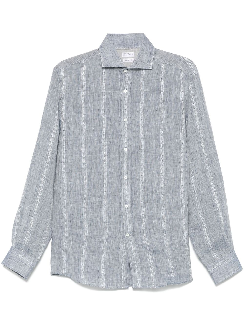 Jacquard stripe linen easy fit shirt with spread collar