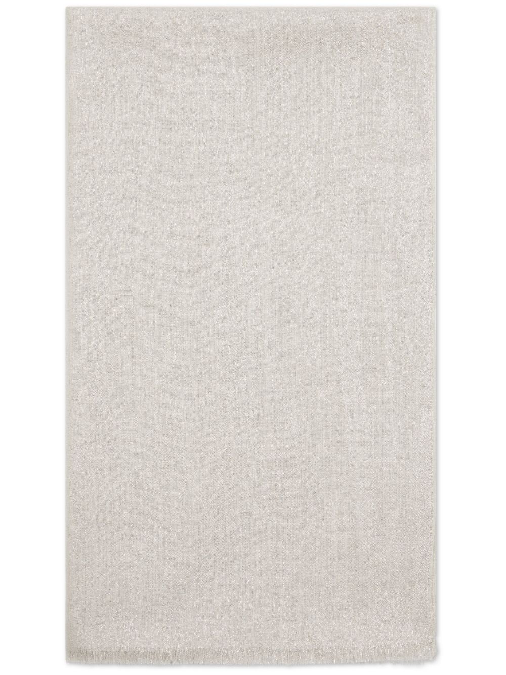 sparkling cashmere-silk scarf Highlights - Pearl white - Cashmere-silk blend - Lame effect - Frayed edge Made in Italy Composition Cashmere 55%, Silk 33%, Nylon 12% SIZE & FIT Measurement LENGTH 86.61 in(220 cm) WIDTH 35.43 in(90 cm)