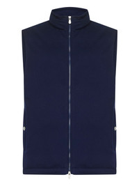 stand-collar zip-front gilet Highlights - Blue - Stand collar - Double-slider zip closure - Sleeveless - Side snap-buttoned welt pockets - Adjustable drawstring hem - Wool canvas design Made in Italy Composition Wool 100% Washing instructions Read Manufacturer Guidelines