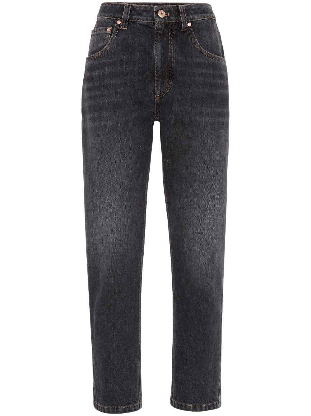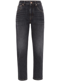 straight-leg cropped jeans Proof of Brunello Cucinelli’s classic sense of elegance, these jeans showcase a timeless straight-leg design. Presented in a black hue, this pair adopts a versatile visual identity. Highlights - Black - Cotton - Washed denim - Straight leg - Belt loops - Front button and zip fastening - Classic five pockets - Cropped leg Made in Italy Composition Cotton 100% SIZE & FIT Model measurements Height 5 ft 11 in(1.8 m) Bust/Chest 31.49 in(80 cm) Hips 36.61 in(93 cm) Waist 24.4 in(62 cm) FittingInformation Designed for a straight-leg fit, these jeans allow for a close fit at the waist and an unrestricted and comfortable fit over the leg Sturdy and hard-wearing, this denim piece offers no stretch This piece fits true to size – take your usual size Washing instructions Read Manufacturer Guidelines