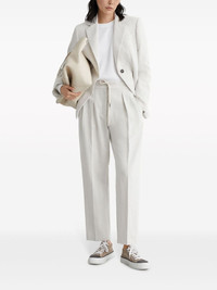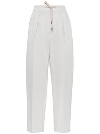 straight-leg gabardine trousers Highlights - Off-white - Cotton-linen blend - Gabardine weave - Pleat detailing - High waist - Elasticated drawstring waistband - Two side slit pockets - Two rear welt pockets Made in Italy Composition Cotton 80%, Linen/Flax 20%
