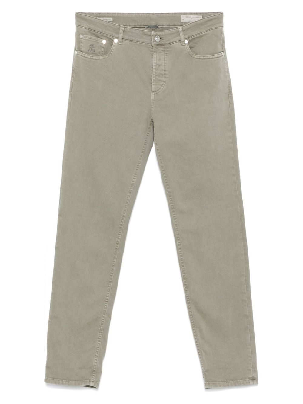 straight-leg trousers Highlights - Green - Front button and zip fastening - Classic five pockets - Belt loops - Logo patch to the rear Made in Italy Composition Outer: Calf Leather 100%, Cotton 99%, Elastane 1% Lining: Cotton 100% SIZE & FIT Model measurements Height 6 ft 0 in(1.84 m) Bust/Chest 35.82 in(91 cm) Hips 37 in(94 cm) Waist 28.34 in(72 cm) FittingInformation Designed for a tapered leg, these jeans allow a loose unrestricted fit over the leg with a closer fit towards the ankle Constructed from stretch denim, this piece offers a stretch fit with durability