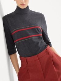 Cotton jersey turtleneck t-shirt with shiny stripes