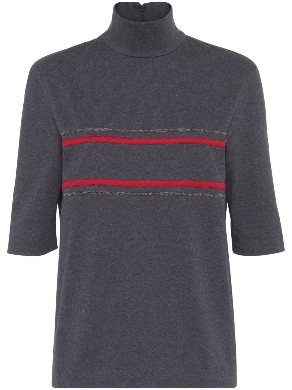 stripe-detail cotton top Highlights - Grey - Cotton - Stripe detailing - Rear zip fastening - Mock neck - Three-quarter length sleeves - Straight hem Made in Italy Composition Cotton 100% Washing instructions Read Manufacturer Guidelines