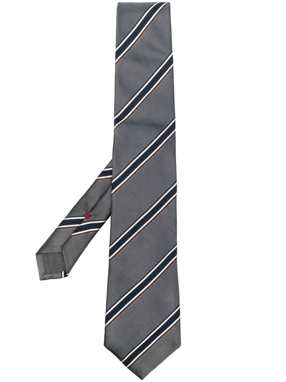 stripe-print satin tie dark grey silk satin finish stripe print pointed tip Made in Italy Composition Silk 100% Washing instructions Dry Clean Only