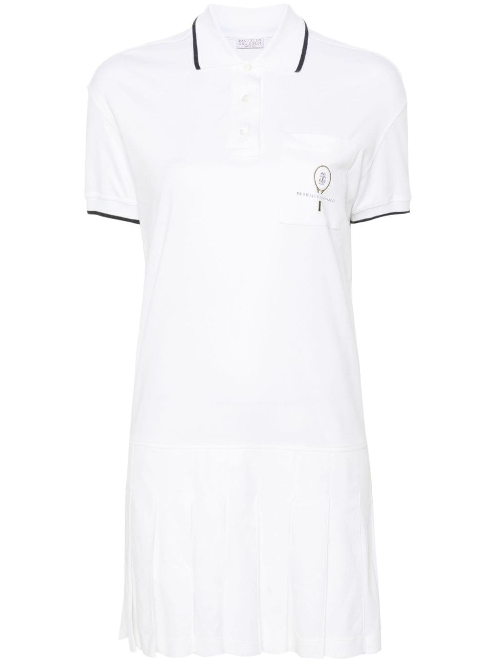 stripe-tipping cotton minidress Highlights - Chalk white - Cotton - Interlock weave - Shift style - Striped tipping - Ribbed trim - Embroidered motif and logo print at the chest - Polo collar - Short sleeves - Chest patch pocket - Pleated skirt - Unlined - Above-knee length - Front button placket Made in Italy Composition Cotton 100% SIZE & FIT Model measurements Height 5 ft 10 in(1.77 m) Bust/Chest 33.85 in(86 cm) Hips 34.64 in(88 cm) Waist 24.01 in(61 cm) FittingInformation Designed for a relaxed fit, this piece allows for comfort and movement when worn Made from a midweight non-stretch fabric, this piece offers minimal elasticity when worn This piece fits true to size – take your usual size Washing instructions Dry Clean Only