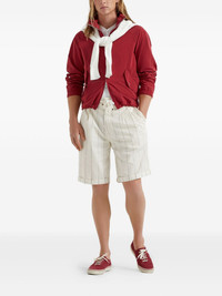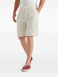 Wool and Sea Island cotton chalk stripe gabardine Bermuda shorts with drawstring and double pleats