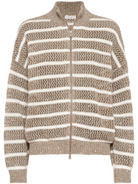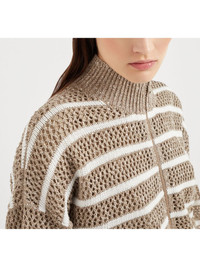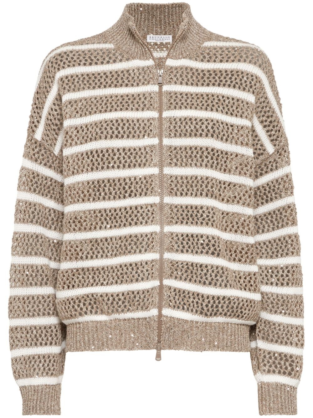 striped cardigan Highlights - Light brown - Front two-way zip fastening - Ribbed cuffs and hem - Drop shoulder Made in Italy Composition Eco Linen 94%, Nylon 6%