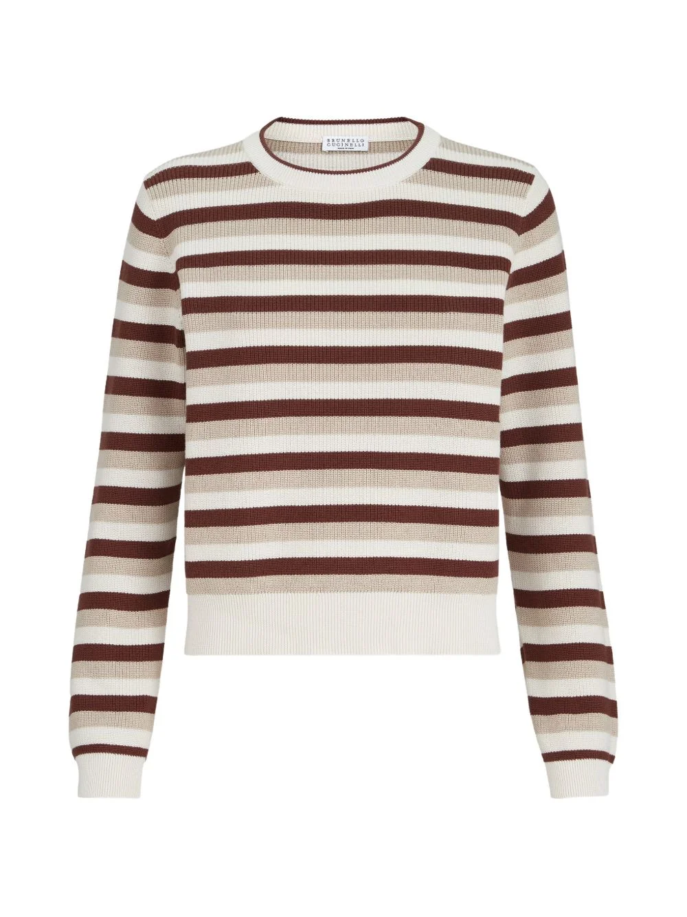striped cotton sweater Highlights - Orange/beige - Stripe pattern - Round neck - Long sleeves - Ribbed hem - Ribbed cuffs Made in Italy Composition Cotton 100% Washing instructions Read Manufacturer Guidelines
