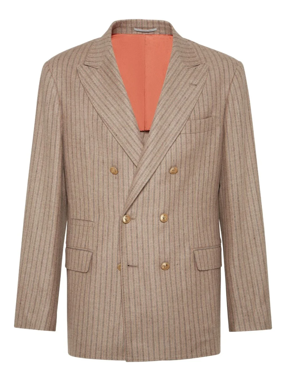 striped double-breasted blazer Highlights - Light brown - Striped - Double breasted - Button fastening - Flap pockets - Peak lapels Made in Italy Composition Cashmere 65%, Silk 35% Washing instructions Specialist Cleaning