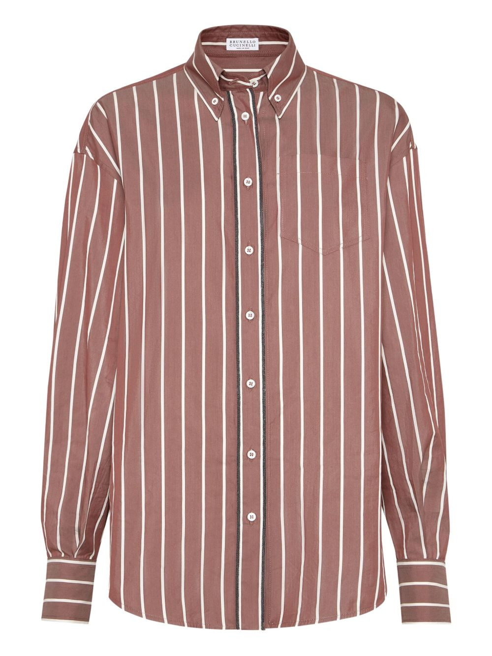 striped poplin shirt Highlights - Brown - Vertical stripes - Button fastening - Long sleeves - Patch pocket - Classic collar Made in Italy Composition Cotton 81%, Silk 19% Washing instructions Hand Wash