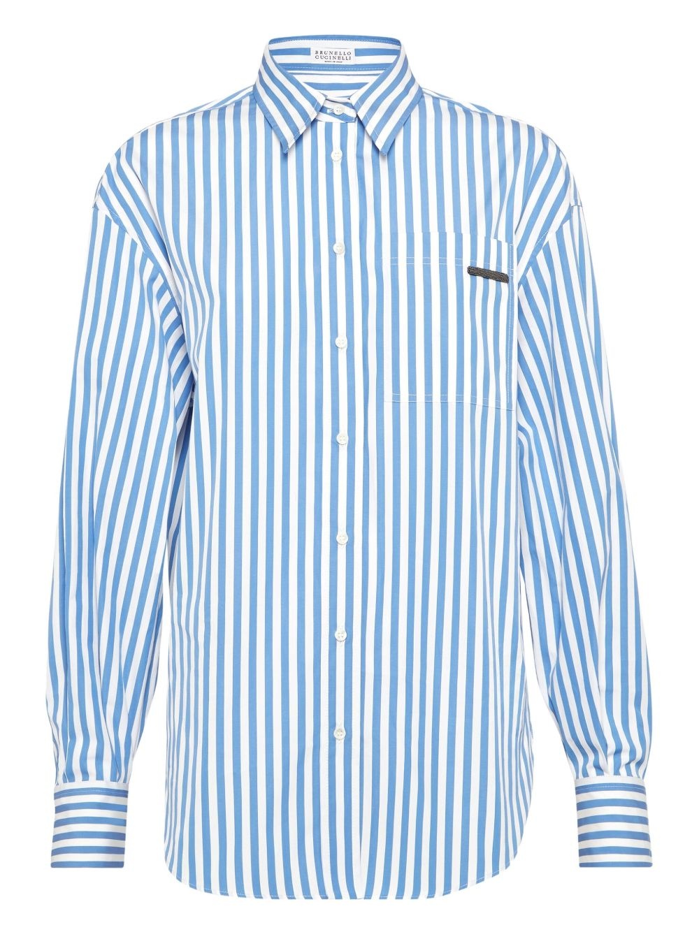 striped poplin shirt Highlights - Light blue - Vertical stripes - Long sleeves - Button fastening - Chest pocket Made in Italy Composition Cotton 100% Washing instructions Read Manufacturer Guidelines