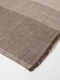 striped scarf Highlights - Brown - Vertical stripe pattern - Frayed hem Made in Italy Composition Silk 80%, Linen/Flax 20% SIZE & FIT Measurement LENGTH 71.06 in(180.5 cm) WIDTH 29.33 in(74.5 cm)