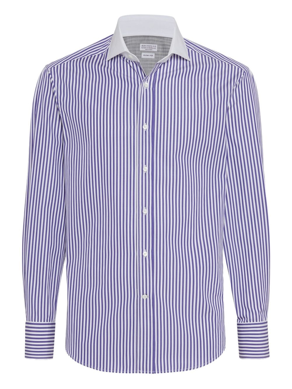 striped shirt Highlights - Blue - Vertical stripes - White collar - Long sleeves - Button fastening - Cuffed sleeves Made in Italy Composition Cotton 100% Washing instructions Machine Wash