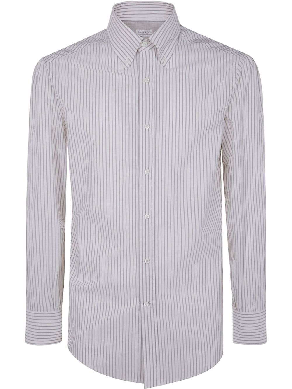 striped shirt Highlights - Chocolate brown - Front button fastening - Buttoned-cuff sleeves - Button-down collar - Curved hem Imported Composition Fabric 100%