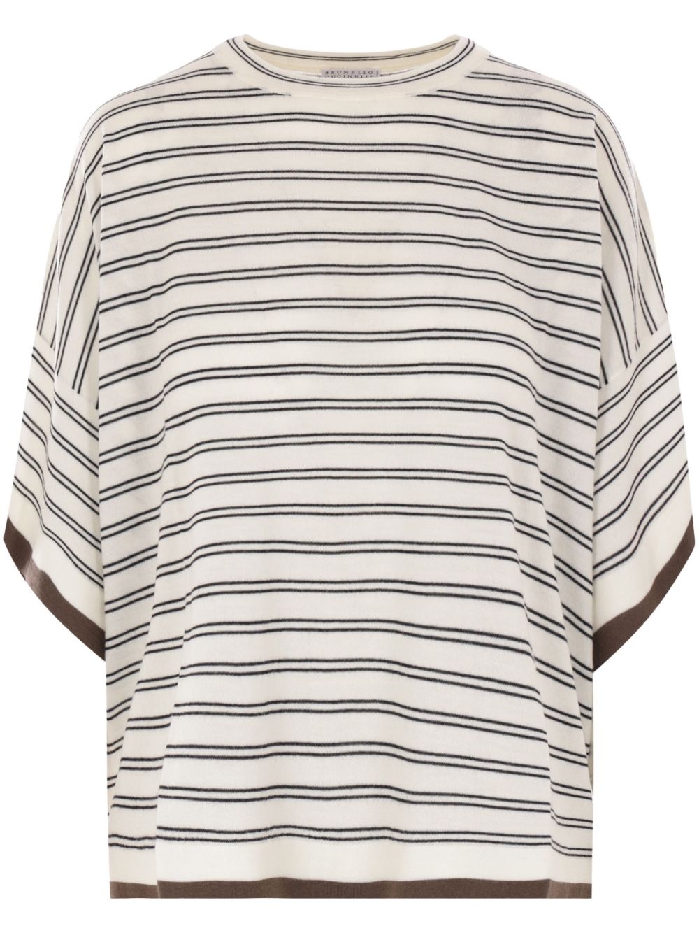 Cashmere and silk striped lightweight knit T-shirt