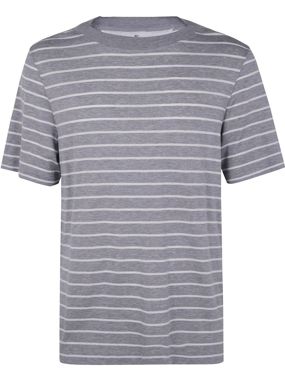 striped T-shirt Highlights - Beluga grey - Round neck - Short sleeves - Straight hem Imported Composition Fabric 100%