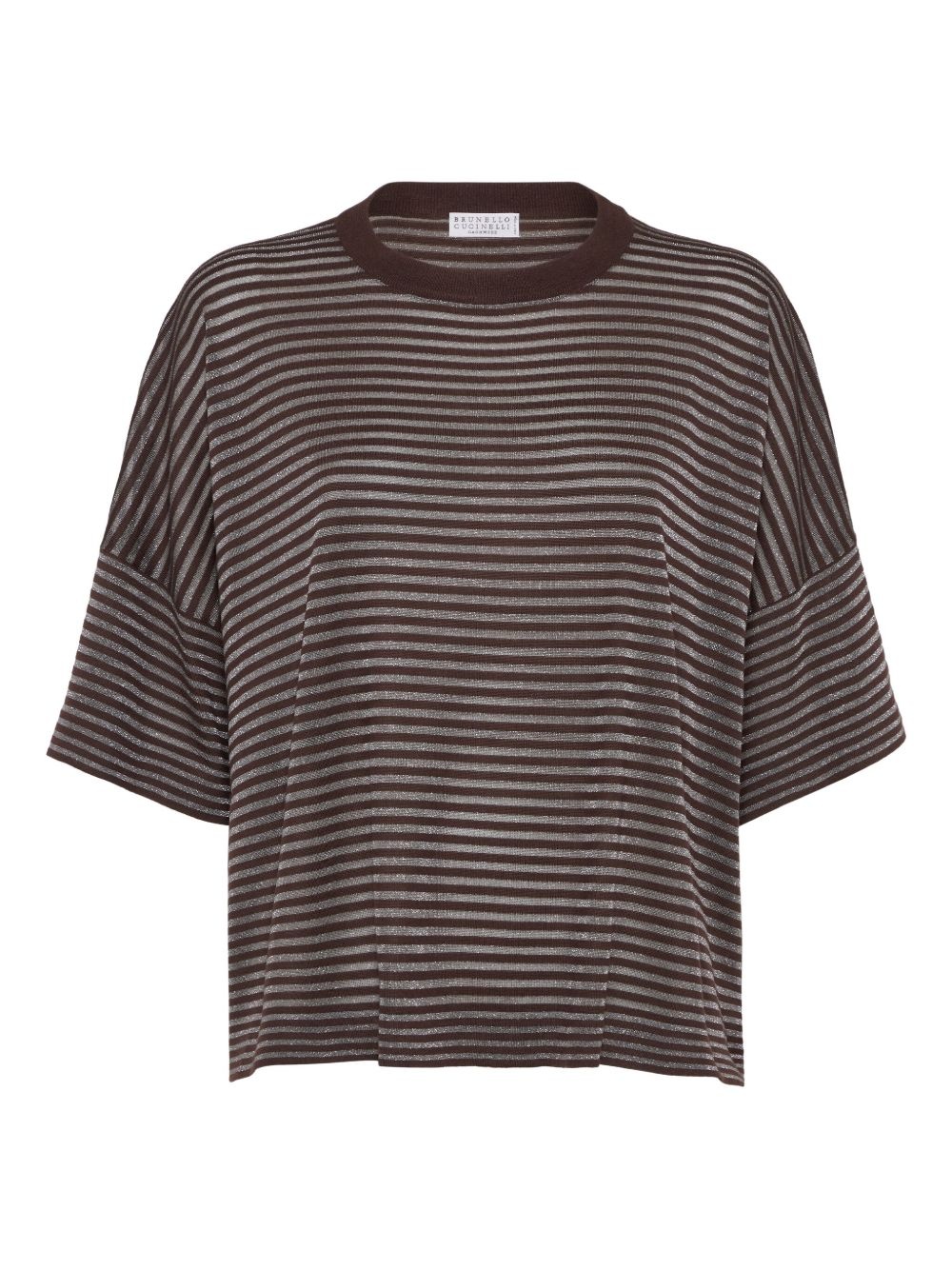 striped T-shirt Highlights - Chocolate brown - Crew neck - Short sleeves - Straight hem Made in Italy Composition Virgin Wool 90%, Cashmere 10%
