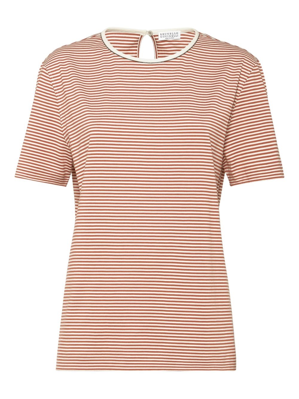 striped T-shirt Highlights - Orange - Single rear button fastening - Keyhole detail to the rear - Crew neck - Short sleeves Made in Italy Composition Cotton 100%