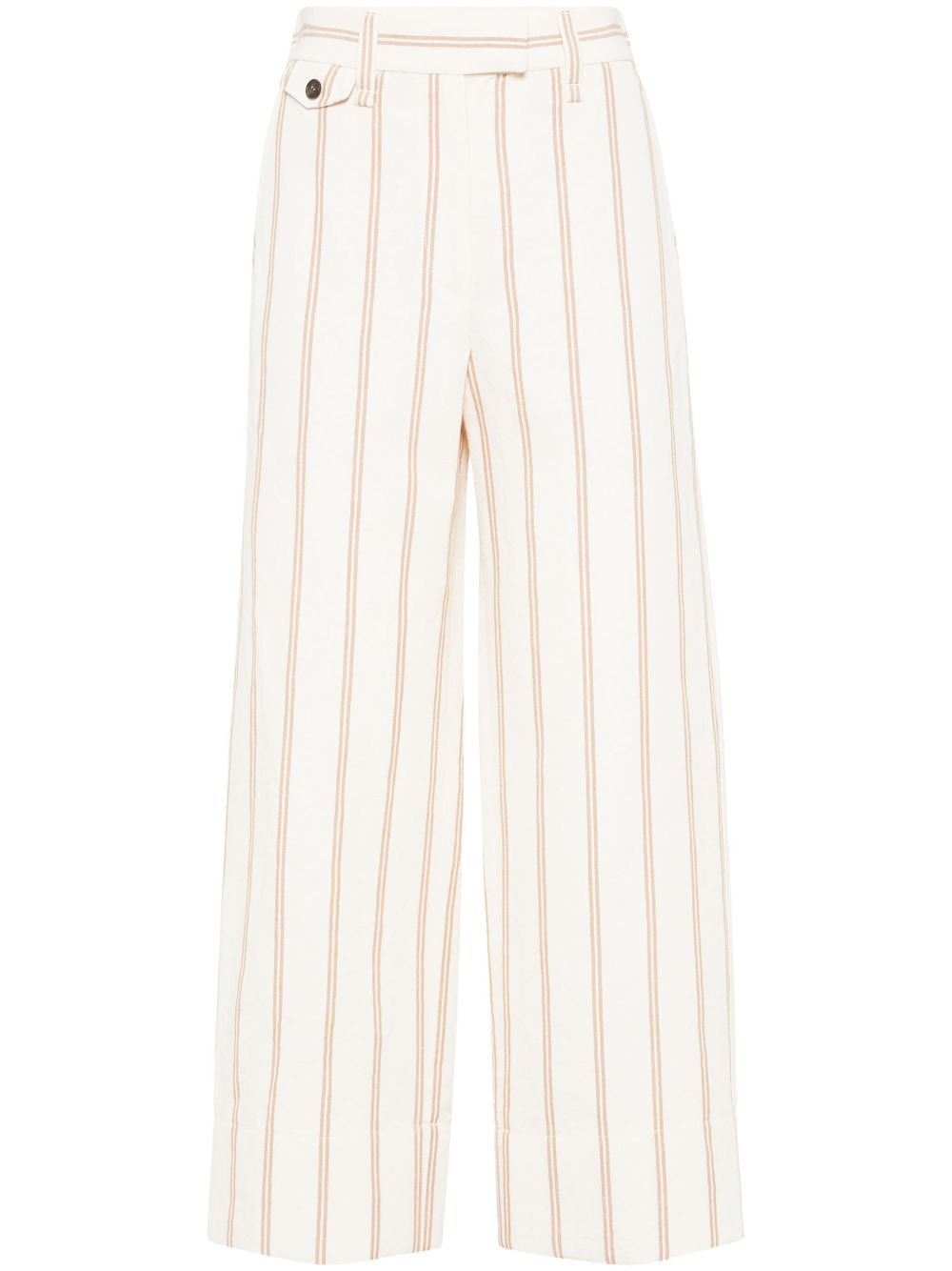 striped wide-leg trousers Highlights - Light beige - Concealed front fastening - Belt loops - Two side slash pockets - Two rear flap pockets Made In Italy Composition Eco Linen 56%, Cotton 44%