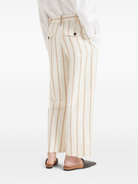 Linen and cotton regimental stripe panama cropped chino trousers with monili