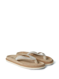 Brunello Cucinelli Mens Slippers In Sand Highlights - Sand beige - Suede - Slip-on style - Branded footbed - Open toe - Flat rubber sole Made in Italy Composition Outer: Suede 100% Sole: Rubber 100% Lining: Suede 100%
