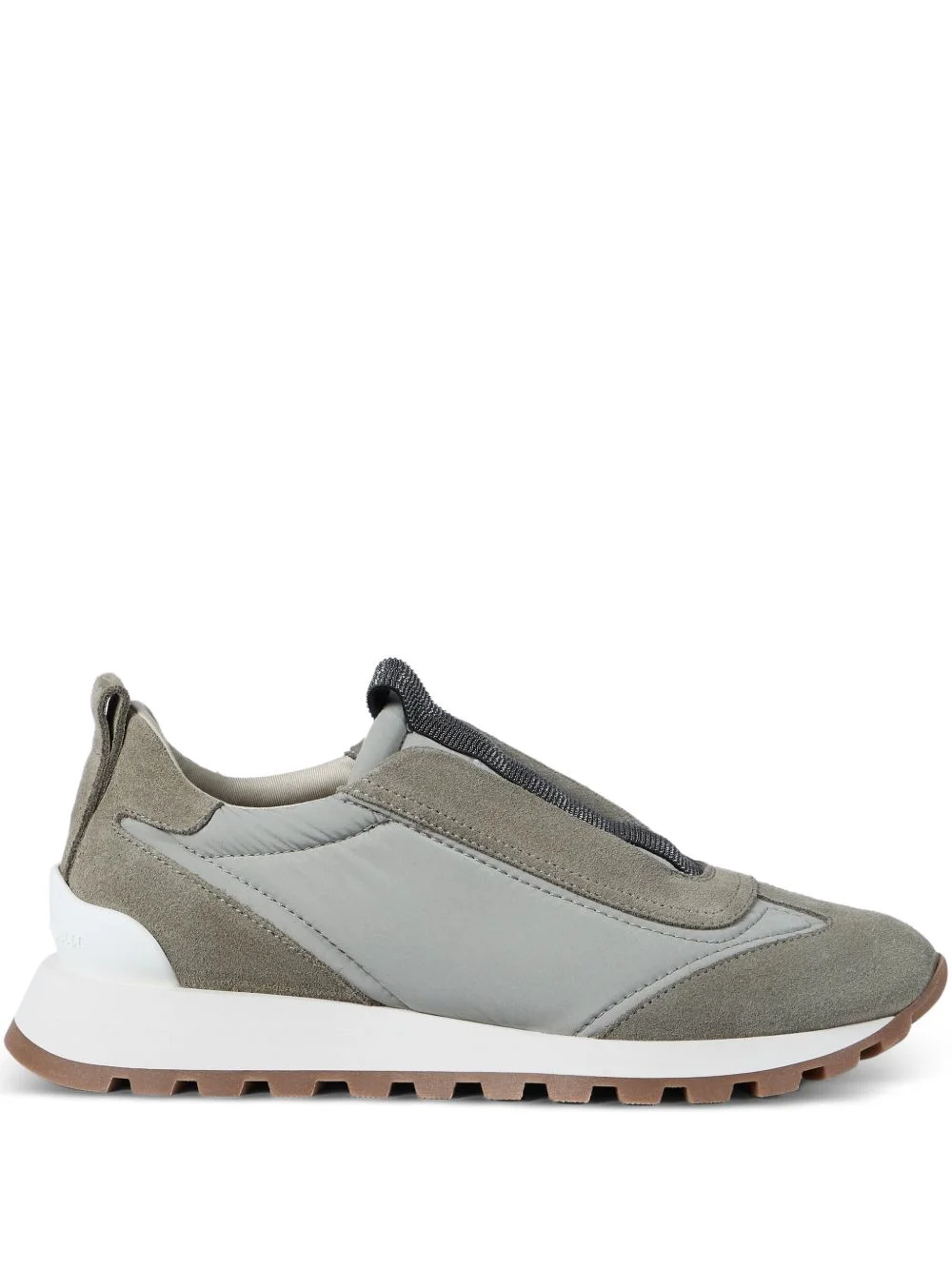 suede-panel slip-on sneakers Highlights - Khaki - Suede panels - Pull tab - Rubber sole Made in Italy Composition Outer: Calf Suede 100%, Polyester 70%, Nylon 30% Lining: Fabric 100%, Calf Leather 100% Sole: Thermoplastic Polyurethane (TPU) 100%