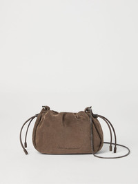 suede shoulder bag Highlights - Taupe brown - Top drawstring fastening - Chain-link shoulder strap - Main compartment - Internal card slot Made in Italy Composition Outer: Calf Leather 100%