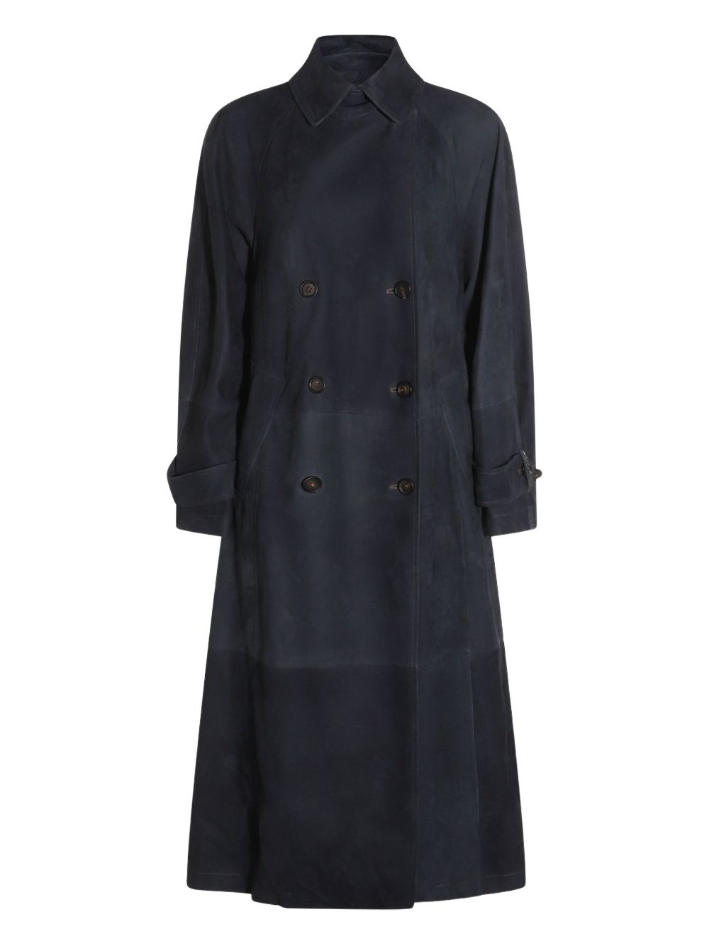 suede trench coat Highlights - Blue - Double-breasted button fastening - Classic collar - Two side welt pockets - Long sleeves Made in Italy Composition Calf Suede 100%