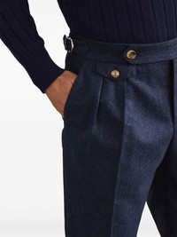 Virgin wool flannel tailor fit trousers in twisted cotton gabardine with double pleats and waist tab