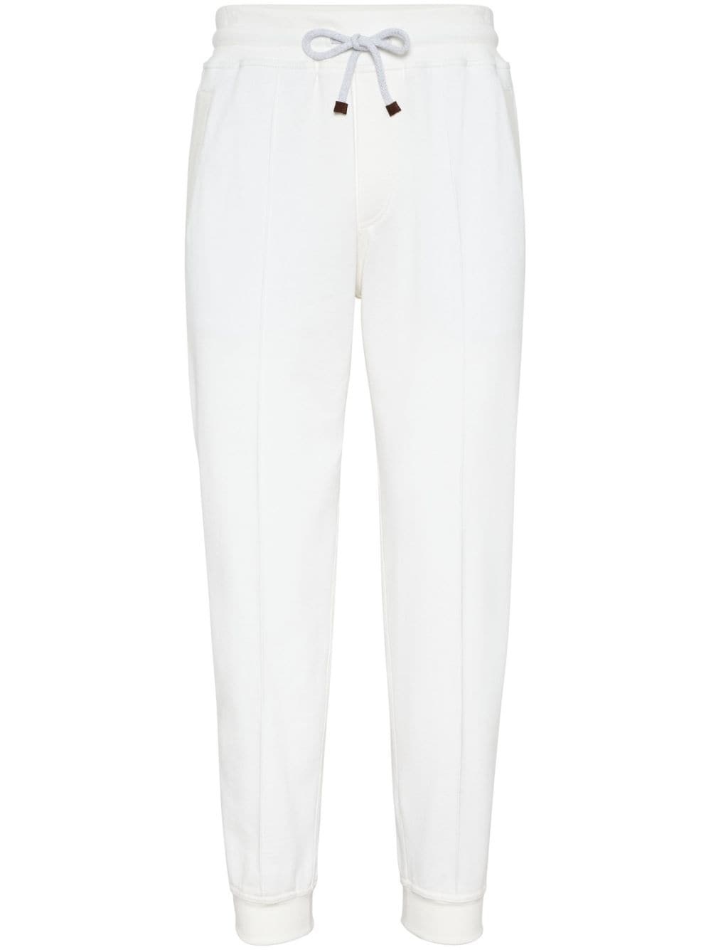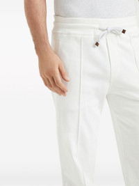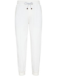 tapered cotton track pants Highlights - White - Cotton - Jersey texture - Elasticated drawstring waistband - Two side slash pockets - Two rear jetted pockets - Tapered leg - Ribbed ankles Made in Italy Composition Cotton 100% Washing instructions Read Manufacturer Guidelines