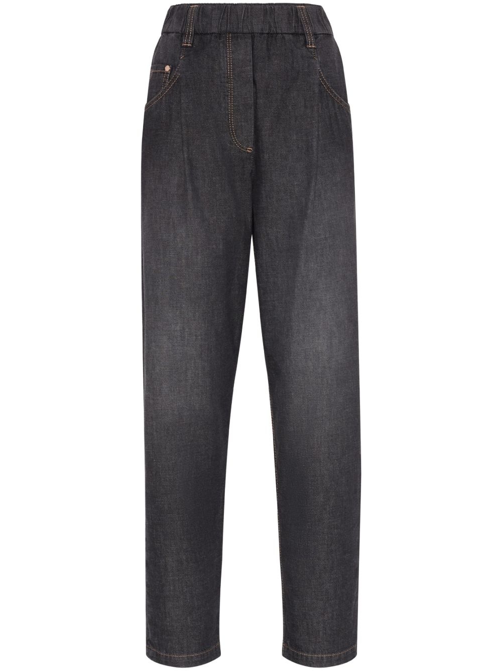 tapered jeans Highlights - Black - Elasticated waistband - Classic five pockets - Contrast stitching Made in Italy Composition Eco Brass 100%, Cotton 100%