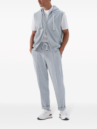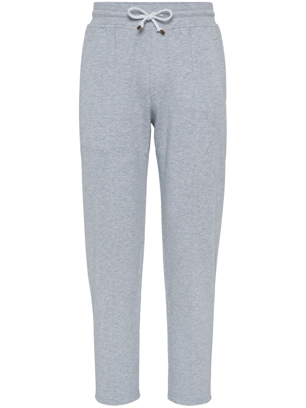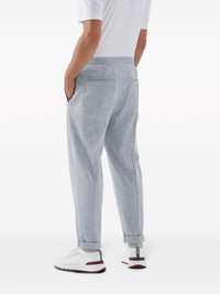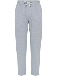 tapered leg trousers ash grey cotton blend drawstring waist tapered leg two side slit pockets Made in Italy Composition Cotton 93%, Nylon 7% SIZE & FIT Model measurements Height 6 ft 2 in(1.88 m) Bust/Chest 36.61 in(93 cm) Hips 37.79 in(96 cm) Waist 28.74 in(73 cm) Measurement FRONT RISE 13.38 in(34 cm) INSIDE LEG 29.92 in(76 cm) FittingInformation This piece fits true to size. We recommend you get your regular size Cut for a slim fit Made with a mid-weight fabric