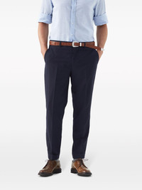 tapered-leg wool trousers Highlights - Navy blue - Virgin wool-silk blend - Tailored design - Belt loops - Concealed fly and button fastening - Two side slit pockets - Pressed crease - Two rear jetted pockets - Tapered leg - Turn-up hem Made in Italy Composition Virgin Wool 85%, Silk 15% Washing instructions Dry Clean Only